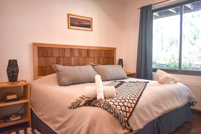 Equipada con una cómoda cama box spring king size y baño privado, es el espacio perfecto para relajarte después de un día explorando la Patagonia.